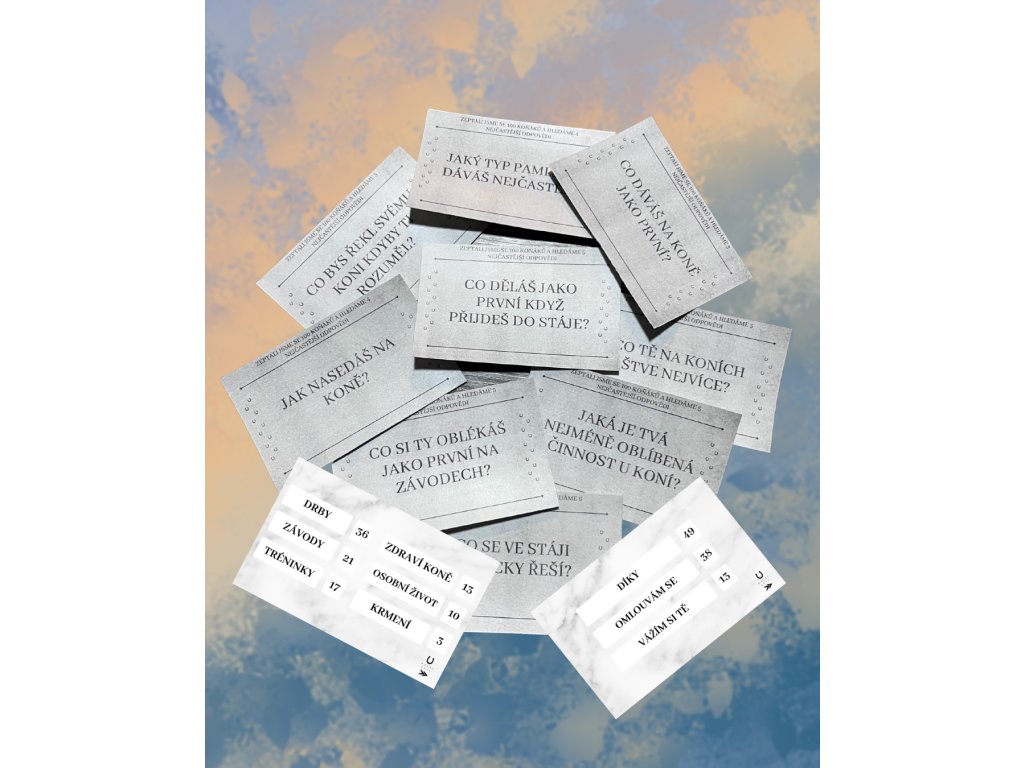 Jezdecký Gamer Pack přináší zcela nový herní zážitek do českého jezdectví, který u nás nemá obdoby. Spojuje dvě originální hry vytvořené speciálně pro jezdce, trenéry i všechny milovníky koní. Každá z nich nabízí jiný typ zábavy, ale dohromady tvoří perfektní kombinaci znalostí, tipování, odhadu a společné diskuze.